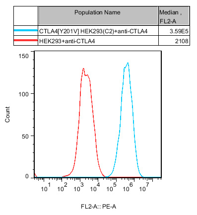 CTLA4[Y201V] HEK293 細胞,在 HEK293 細胞的基礎上,穩(wěn)定表達CTLA4[Y201V] 。 | |