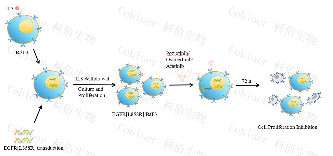 BaF3(小鼠原 B 細(xì)胞)的生長(zhǎng)和增殖需要 IL-3 的維持。通過(guò)引入各種表達(dá)激酶的基因, 能作為 BaF3 的驅(qū)動(dòng)基因,讓 BaF3 不再依賴 IL-3 而增殖,進(jìn)而激酶基因成為 BaF3 增殖依 賴的驅(qū)動(dòng)基因,用于評(píng)估小分子藥物對(duì)激酶的靶向抑制作用,原理及流程見(jiàn)下圖所示。