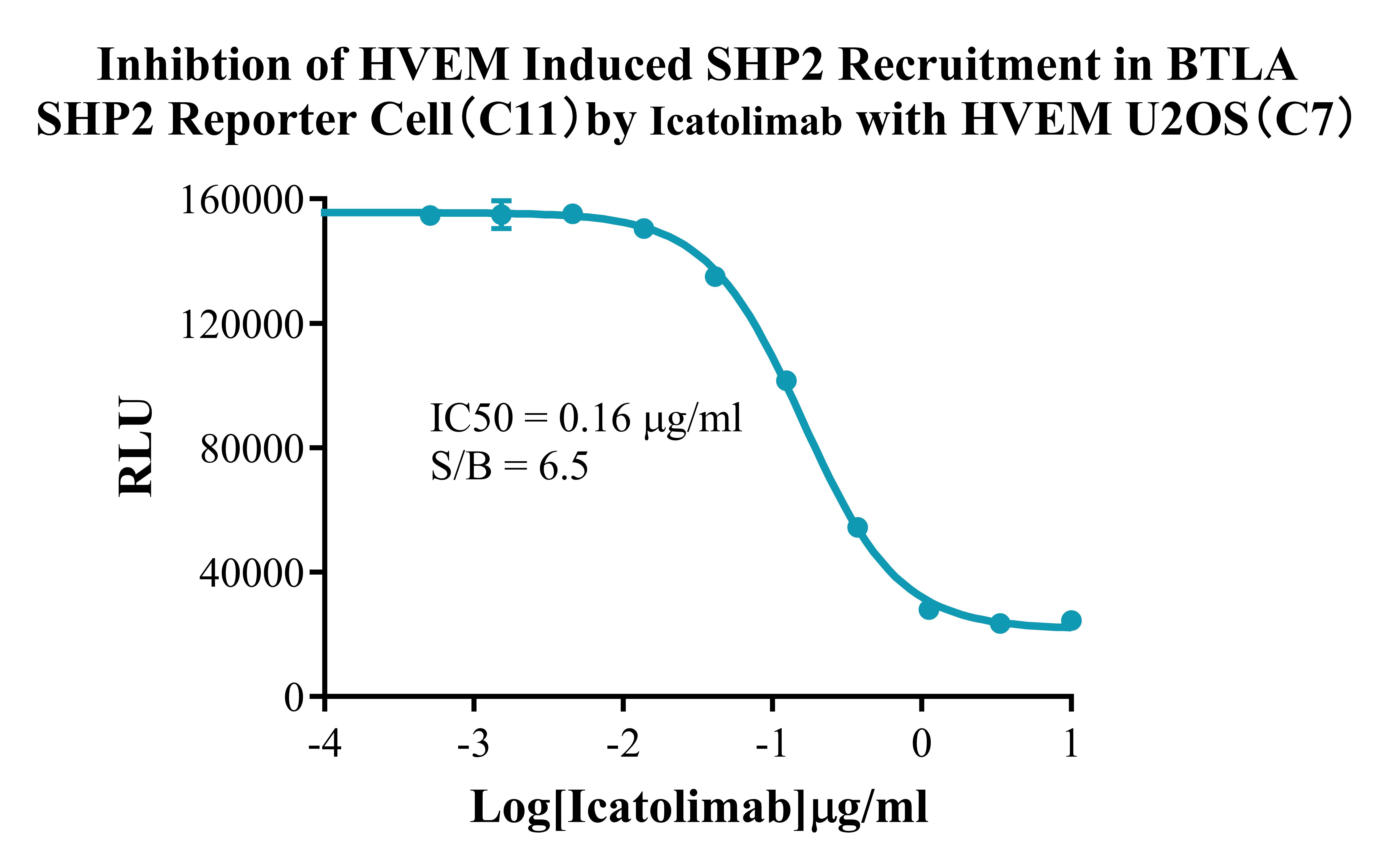Figure 3. Inhibtion of HVEM Induced SHP2 Recruitment In BTLA SHP2 Reporter Cell(C11) By lcatolimab With HVEM U2OS (C7). |