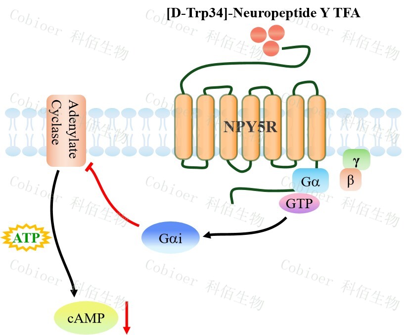 神經(jīng)肽 Y(NPY)作為一種重要的神經(jīng)遞質(zhì),廣泛分布于脊椎動(dòng)物的中樞神經(jīng)系統(tǒng)和 周圍神經(jīng)系統(tǒng)。通過與不同的亞型受體結(jié)合,NPY 激活信號(hào)轉(zhuǎn)導(dǎo)通路,從而調(diào)節(jié)攝食 、能 量平衡、焦慮、晝夜節(jié)律和其他生理過程。NPY 受體(NPYR)屬于 G 蛋白偶聯(lián)受體家族, 目前在哺乳動(dòng)物中已鑒定出 5 種受體基因亞型,即 NPY1R、NPY2R、NPY4R、NPY5R 和 NPY6R。 NPY5R 主要響應(yīng)內(nèi)源性配體神經(jīng)肽 Y(NPY)、肽 YY(PYY)及胰腺多肽(PP), 通過偶聯(lián) Gi/o 蛋白抑制腺苷酸環(huán)化酶活性、降低細(xì)胞內(nèi) cAMP 水平,同時(shí)激活 MAPK/ ERK 通路并動(dòng)員鈣離子信號(hào),在下丘腦攝食中樞、情緒調(diào)節(jié)環(huán)路及能量代謝網(wǎng)絡(luò)中發(fā)揮核 心作用,其異常活化與肥胖、糖尿病及情緒障礙密切相關(guān)。 |