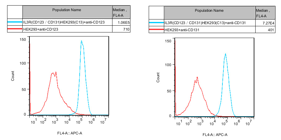 Figure 1. Recombinant IL3(CD123/CD131)  HEK293 constitutively expressing CD123 and CD131 .