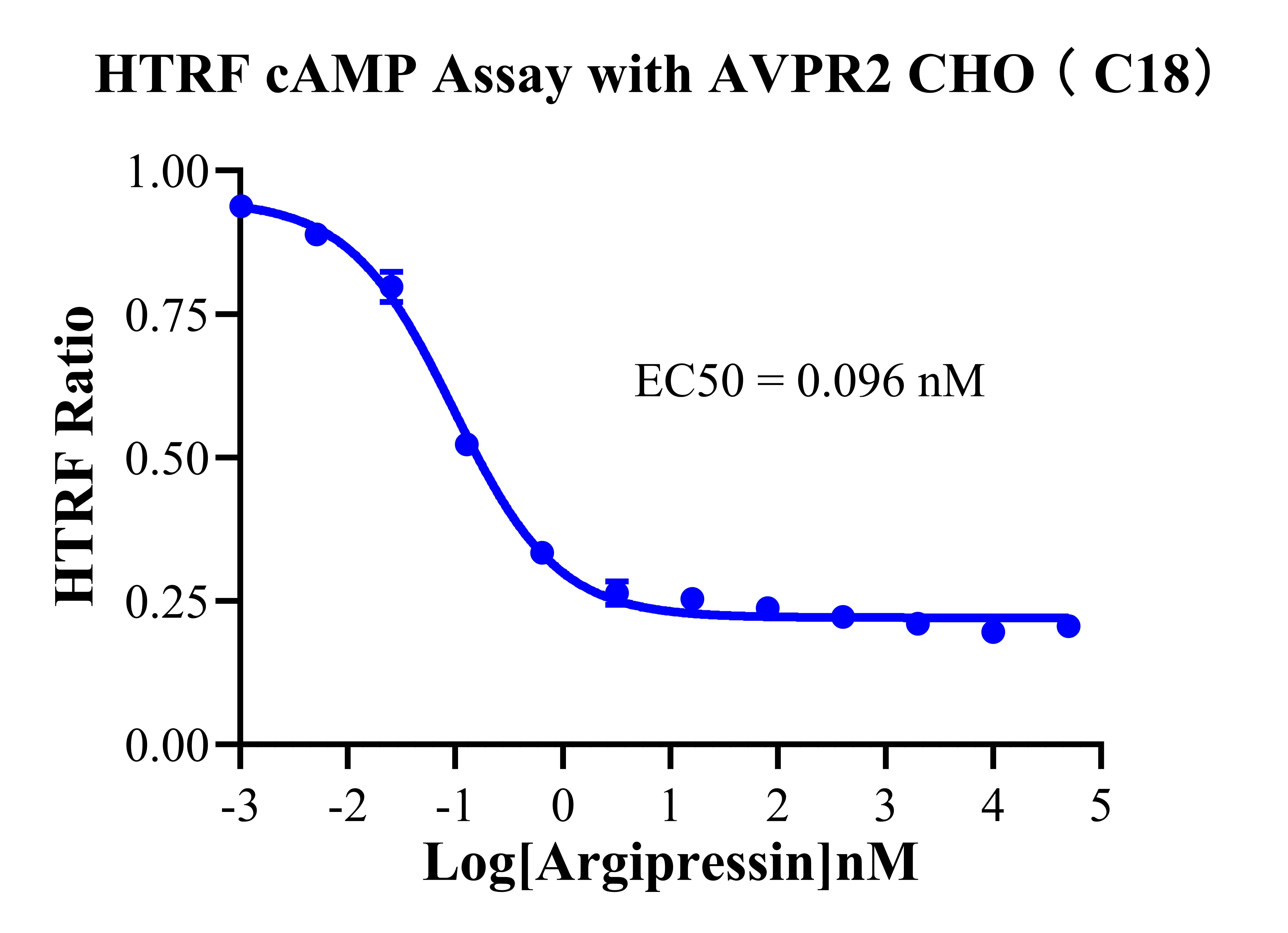 AVPR2 CHO 藥靶模型很好的模擬了體內(nèi) AVPR2 的信號轉(zhuǎn)導(dǎo)過程,原理見下圖所示。