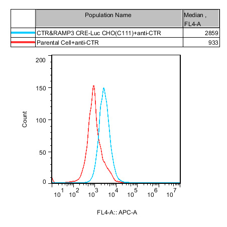 CTR&RAMP3 CRE-Luc CHO 報告基因藥靶模型很好的模擬了體內(nèi) CTR&RAMP3 的信 號轉(zhuǎn)導(dǎo)過程,原理見下圖所示。![]() Figure 1. CTR&RAMP3 CRE-Luc CHO 細(xì)胞模型原理圖 |
