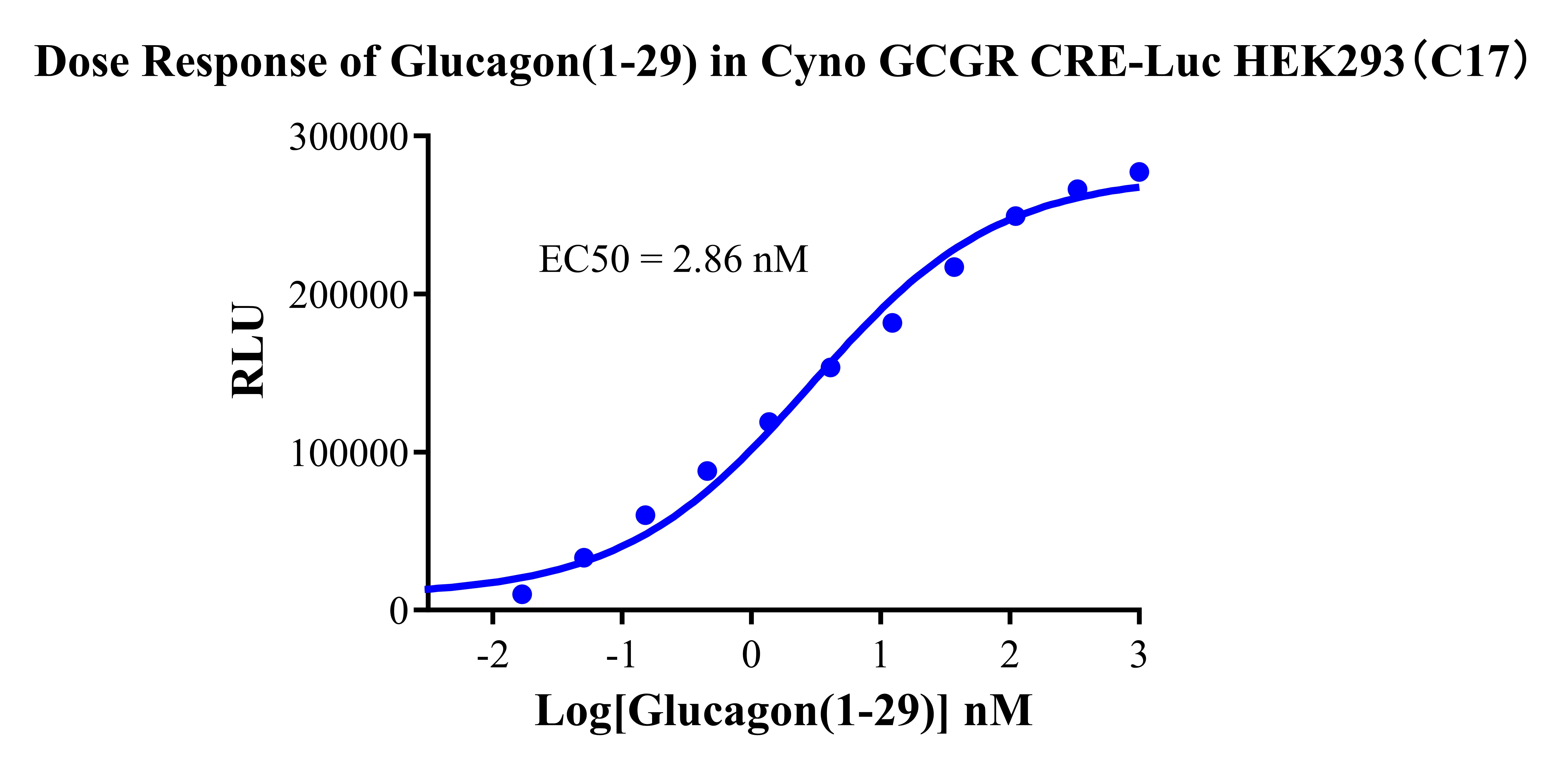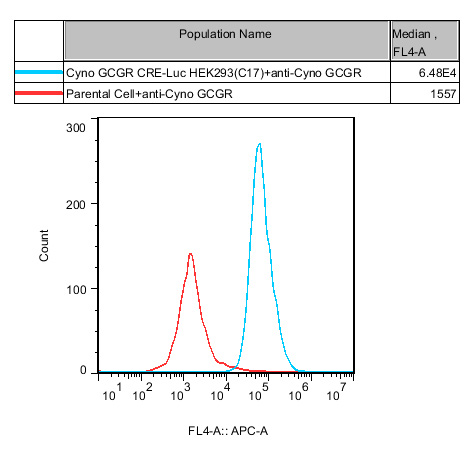 Figure 1. Recombinant Cyno GCGR CRE-Luc HEK293 stably expressing Cyno GCGR.