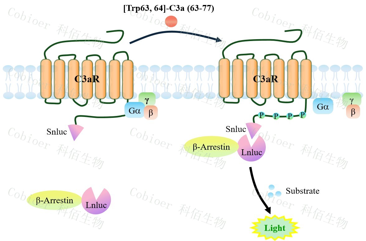 C3aR β-Arrestin CHO 報(bào)告基因藥靶模型很好的模擬了體內(nèi) C3aR/β-Arrestin 的信號(hào)轉(zhuǎn)導(dǎo)過(guò)程,原理見(jiàn)下圖所示。