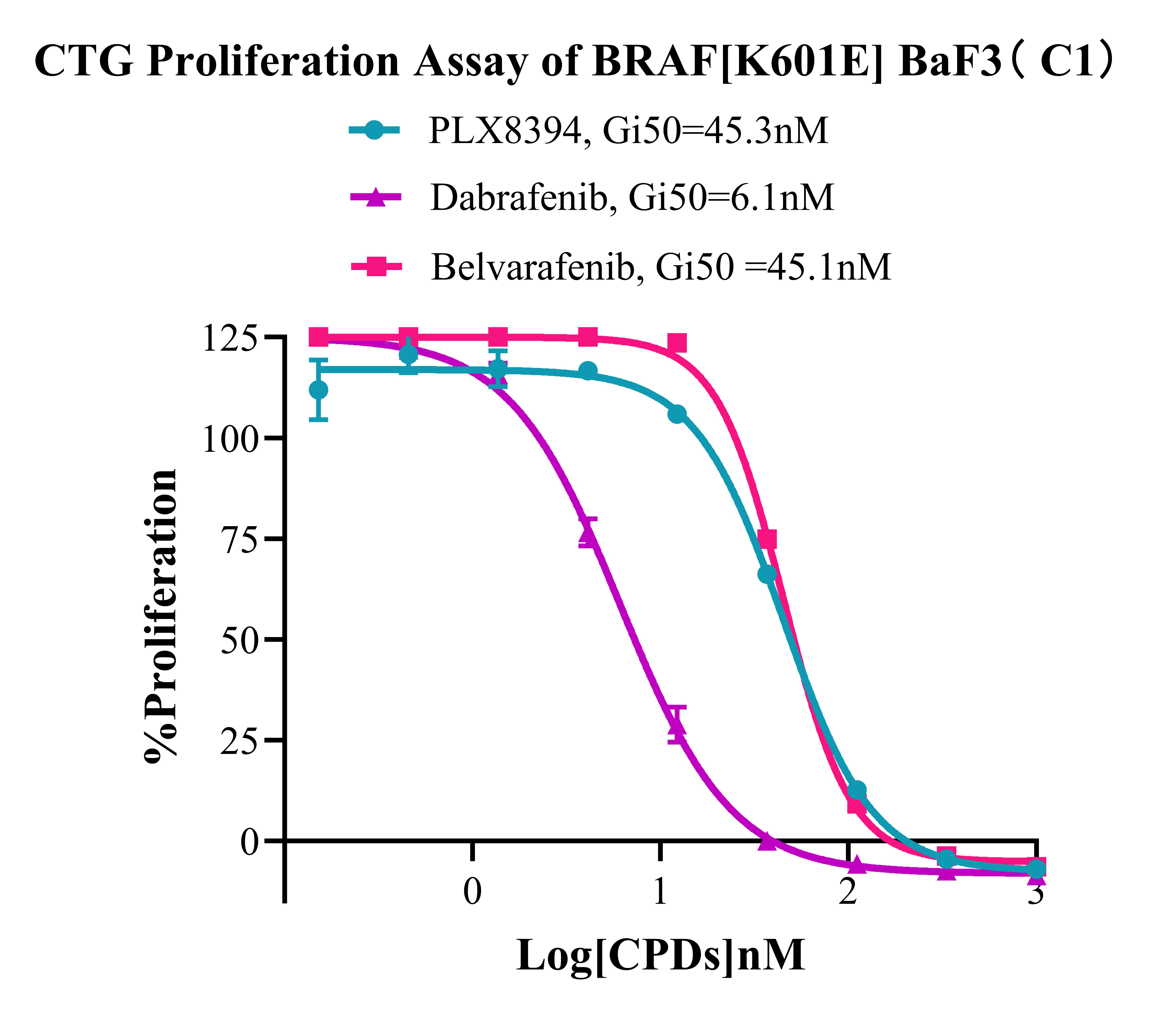 Figure 4. CTG Proliferation Assay of BRAF [K601E] BaF3(C1). |