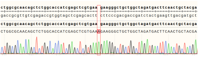 Figure 12. ACVR2B Effector Reporter Cell 測(cè)序結(jié)果 ACVR2A(NM_001616.5): c.409_410insT/ ACVR2A:p.Y137Lfs*76