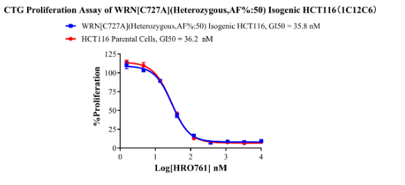 Figure 6. CTG Proliferation Assay of WRN[C727A](Heterozygous,AF%:50) Isogenic HCT116(1C12C6).